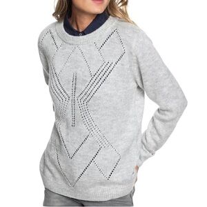 ROXY Women's Candidate Waves Pointelle Pullover Sweater Size Medium Gray