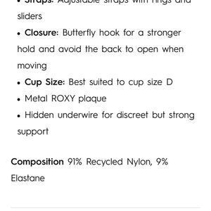 ROXY NWT BIKINI TOP SIZE SMALL HOOK IN BACK IS BUTTERFLY FOR EXTRA STRONG SUPPORT STRAPS ARE ADJUSTABLE AND PADS ARE REMOVABLE MSRP $55