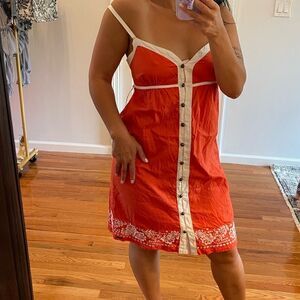 Super cute little orange and white embroidered button down sundress with adjustable shoulder straps, size M, from the brand Roxy.