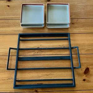 Black iron holder with 4 ceramic squares to serve snacks, cut citrus for the bar, jams, etc