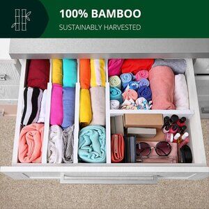 ROYAL CRAFT Bamboo Adjustable Drawer Dividers Organizers Expandable White 4 Pack