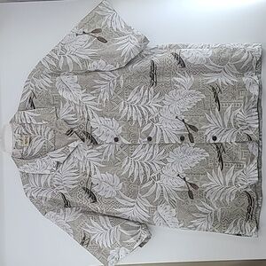 The pre-owned ROYAL CREATIONS Men's Short Sleeve Button Down Floral Hawaiian Shirt in size 2XL is a stylish and comfortable option for men looking for a casual yet tropical-inspired outfit. The beige color, floral pattern, and collared neckline with button-down style give it a classic Hawaiian look, perfect for travel or everyday wear. Made from a woven fabric and featuring a regular fit, this shirt is easy to care for with its machine washable design. Ideal for summer, fall, and spring seasons.