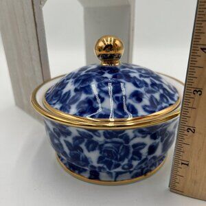 ROYAL DANUBE #1886 Calico Porcelain candy trinket lidded dish Blue Roses Gold Ri