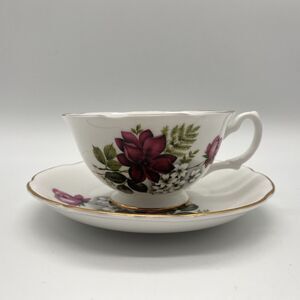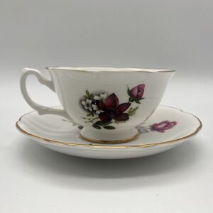 ROYAL GRAFTON Bone China Tea Cup & Saucer Red Roses & White Flowers W/ Gold Trim