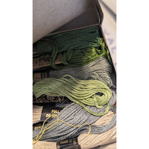 ROYAL MOULINE Mercerized Cotton Coats & Clark & Some DMC Embroidery Floss Lot. Well over 100 skeins. Some of the boxes have been ripped open but the thread was never damaged. There are 11 boxes of the Royal Mouline, some full, some not. Originally, there were 24 skeins in each box. In the bottom of the box are so many more. Three embroidery hoops; one plastic, and two wood. All comes in the box I've store them in for years. They belonged to my grandmother. Other sellers are selling each skein for $1.50 a piece. The majority of these skeins are in unused, perfect condition. From what I can tell, the majority of these skeins were purchased between the 80s and early 90s.