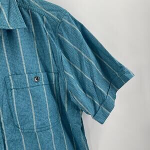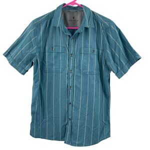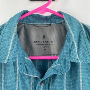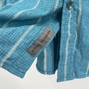 ROYAL ROBBINS Shirt Size Medium Button Down NWT Vista Travel Vacation S/S Blue Casual, Breathable, Business Casual, Office, Work, Summer, Spring, Stripes