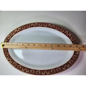 ROYAL VIENNA China Oval White Red & Gold Lace Trim Large 13" Platter