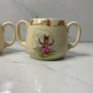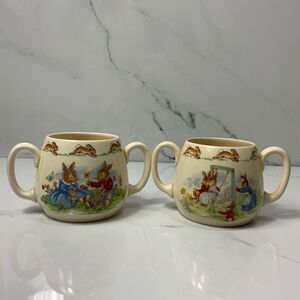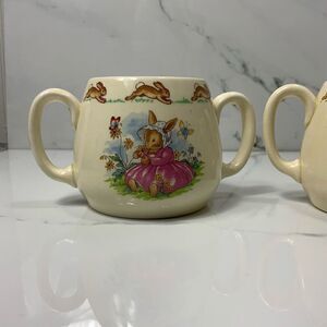 Vintage Royal Daulton Bunnykins English Bone China Albion shaped hugga mugs. Adorable Collectibles. EUC no chips or cracks