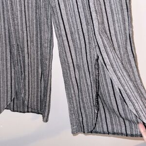 Stylish men's pants featuring a classic black and gray striped design. Perfect for both casual and formal occasions. Legs has slit in front, these are so pretty.