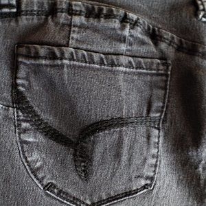 Very good used condition, ROYALTY FOR ME, "Wanna Betta Butt?" stretch denim, cuffed shorts in SIZE 12. Faded Black color.