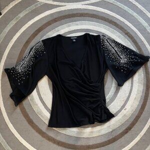 * ROZ & ALI Beaded Rhinestone Black Woman's Top Size Small