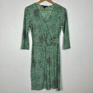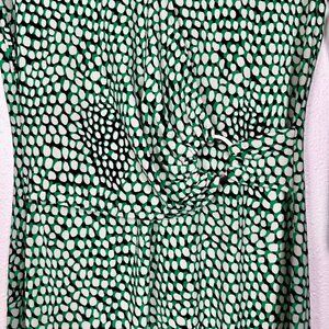 ROZ & ALI Green, white, and Black Geometric Print Faux Wrap Office Dress Size XS
