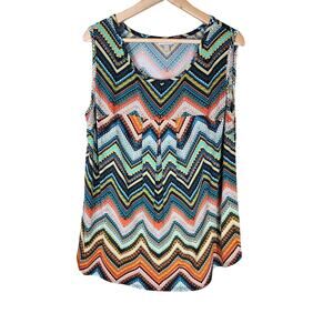 ROZ & ALI Orange Green Blue Chevron Southwestern Design Sleeveless Top SZ 1X