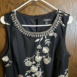 ROZ & ALI WOMENS GORGEOUS DEEP BLACK FLORAL 3D PATTERN LOOK DRESS SIZE 16