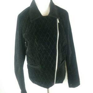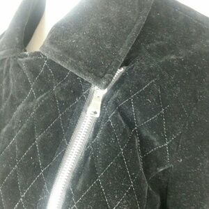 ROZ & ALI l Black Velvet Asymmetrical Zip Jacket