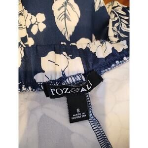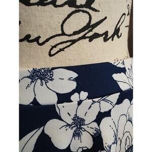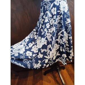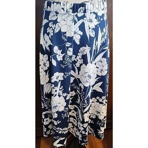 ROZ & ALI navy blue white floral A Line flare midi skirt Sz Small modest stretch