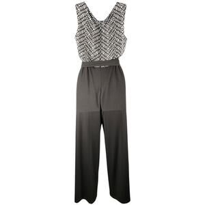ROZ& Ali Black White Sleeveless Jumpsuit W/ Tie Waist Elegant Wide Leg Size 10P