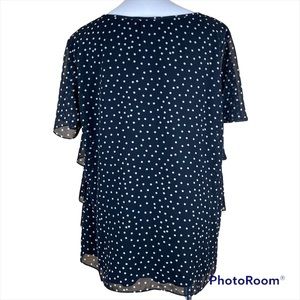 ROZALI 2 Layer Short Sleeve size 2X Black and White Polka Dot Ruffle Blouse