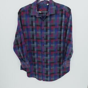 RObert Graham Shirt Mens XL Gray Geometric Flip Cuff Preppy Casual Office Button