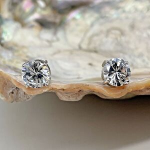 RP 925 Sterling Silver Earrings Round CZ Clear Cubic Zirconia 8mm Studs