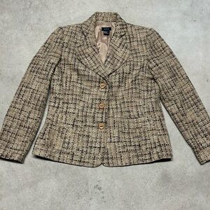 R.Q.T Brown & Gold Tweed Blazer Button Up Jacket Women’s Size 12
