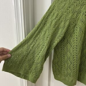 RQT Cape Style Cardigan Boho Teacher Open Knit Flowy Crochet Sweater Green Sz XL