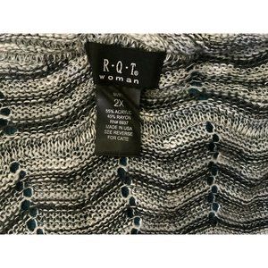 RQT Cardigan Sweater Womens Plus Size 2X Gray Black Light Knit Open Front Fine D