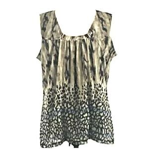 RQT Shirt Petite Large Tank Embellished Animal Print Lined Career Casual A76.
