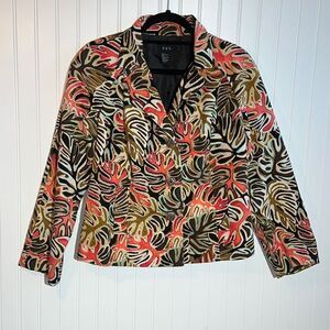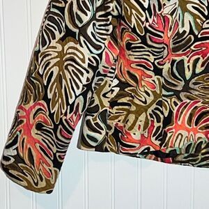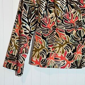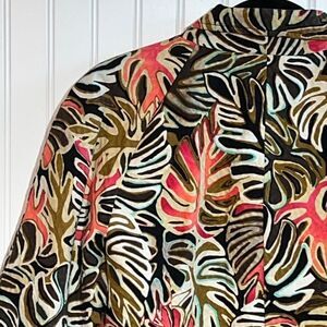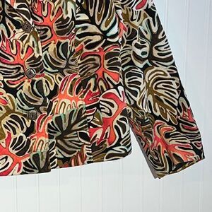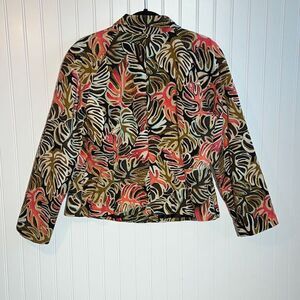 RQT jacket woman’s size large lined cotton long sleeve tropical leaf button fron