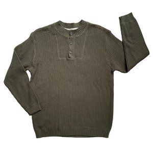 R&R Outdoors Henley Thermal Knit Sweater Olive Green Gorpcore Outdoor Rugged-M