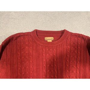 R&R Outdoors Men's Red Cable Knit Sweater Cotton Pullover XL Classic
