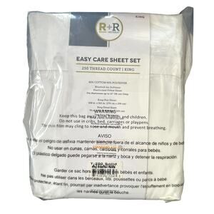 R+R Room + Retreat 250 Thread Count Easy Care Sheet Set KING Size White Set of 4