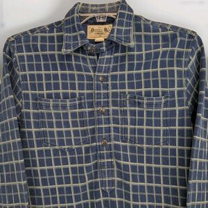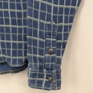 RRL Double RL Ralph Lauren Pullover Work Shirt Indigo/Cream Check Men's Small A super-soft pullover work shirt from a titan of all things Americana RRLs Pullover Work Shirt is a uniquely handsome heritage piece. Built from soft, ribbed cotton jersey fabric thats been indigo-dyed and pigment-printed with a checked pattern, this pullover shirt is finished off with a half-length front placket for timeless style. Its pre-washed for softness too, so you get that lived-in, go-to shirt feel right out of the gate. Features: * Pullover work shirt exudes heritage style * Built from a ribbed cotton jersey fabric thats super-soft * Dyed with real indigo and pigment-printed with a check pattern * Half length front placket and buttoned throat latch add unique style * Two patch pockets at the chest keep your essentials close at hand * Washed for a sun-faded, lived-in look Measurements laid flat (approximate): * Top of shoulder to bottom hem: 27" * Underarm to underarm: 20" * Underarm to sleeve hem: 21"