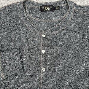 RRL Double RL Ralph Lauren Shirt Mens Large Gray Henley Ribbed Thermal Stretch Excellent preowned condition. See listing photos for details & garment measurements.