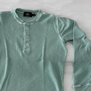 RRL Double RL Ralph Lauren Waffle Knit Henley - Seafoam Blue - Size M