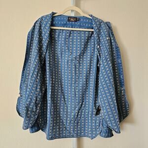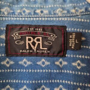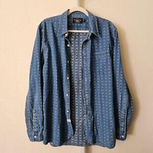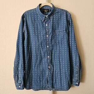 RRL RALPH LAUREN Indigo Calico Wabash Geometric Southwestern Aztec Button Long Sleeve Shirt Sz L