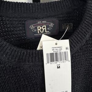 RRL Ralph Lauren Black Cotton Wool Waffle Knit Fall Core Sweater M NEW Crewneck
