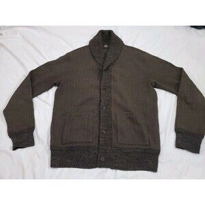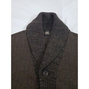 RRL Ralph Lauren Brown 2 Tone Chevron Knit Cardigan Sweater Mens Large