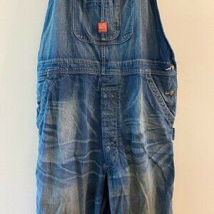 RRL Ralph Lauren Mens Denim Overalls Blue Flap Pocket Button Fly Whiskered Large