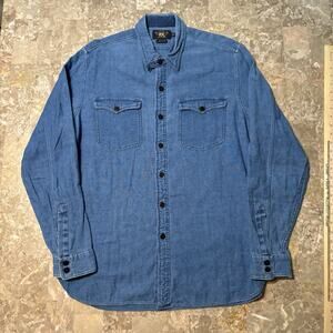 RRL Ralph Lauren Shirt Mens XL Blue Herringbone Chinstrap Workshirt Western