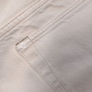 Inside, twill pocket linings provide a nod to vintage workwear, while a handwritten “Sample” marking on the inner leg gives these a one-of-a-kind provenance.