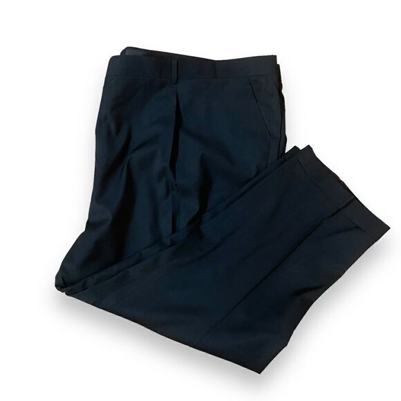 These pants are in excellent pre-owned condition. They are the perfect wardrobe basic. They have front pleats and a tab and button closure. The bottoms are cuffed.