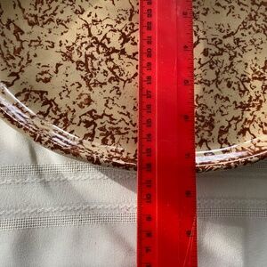 Vintage brown spongeware ceramic tray in excellent condition by Roseville. Measurements are in photos. Some very slight signs of wear and crazing that is hidden by the busy spongeware pattern.
