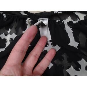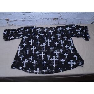 R.Rouge Sheer Black Gothic Cross Print Off the Shoulder Top Women's Size 3XL