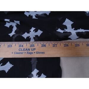 The R.Rouge Sheer Black Gothic Cross Print Off the Shoulder Top in Women's Size 3XL is a stylish and versatile blouse perfect for casual occasions. Made from lightweight polyester chiffon fabric, the top features a flattering off the shoulder neckline with 3/4 flutter sleeves. The relaxed fit and sheer detailing add a touch of gothic style to the peasant-inspired design. This United States manufactured blouse from the brand R.Rouge is a must-have for women looking to make a statement with their fashion choices.