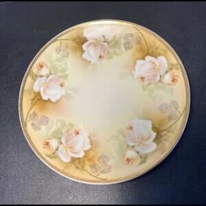 RS Germany Vintage 1920 To 1944 Hand-Painted Pastel Roses Cabinet Plate 7.5”