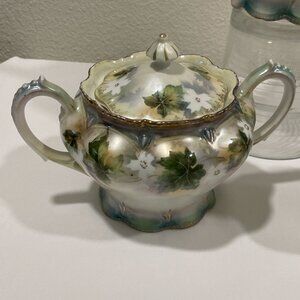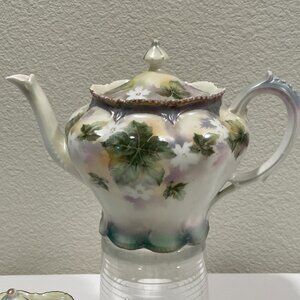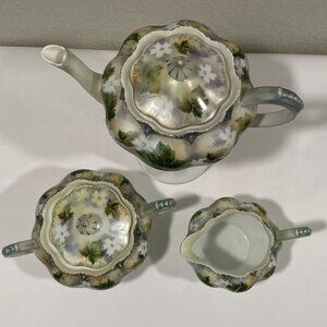 RS PRUSSIA Genuine Vintage Tea Set of 3, Ivory/Green/Gold/Rose Ivy & Floral