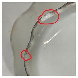 * Note: Last very enlarged photo shows the bottom edge of the creamer. It has 1 very small and 1 slightly larger chips. They are NOT visible from the "outside", only visible if you have the creamer upside down.