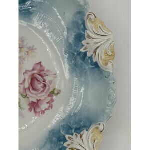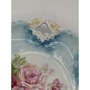 RS Prussia Antique Blue Cake Plate Pink Roses 1910