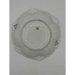 The item is an antique RS Prussia porcelain plate, likely a cake plate, dating back to the Victorian era. Key features include: